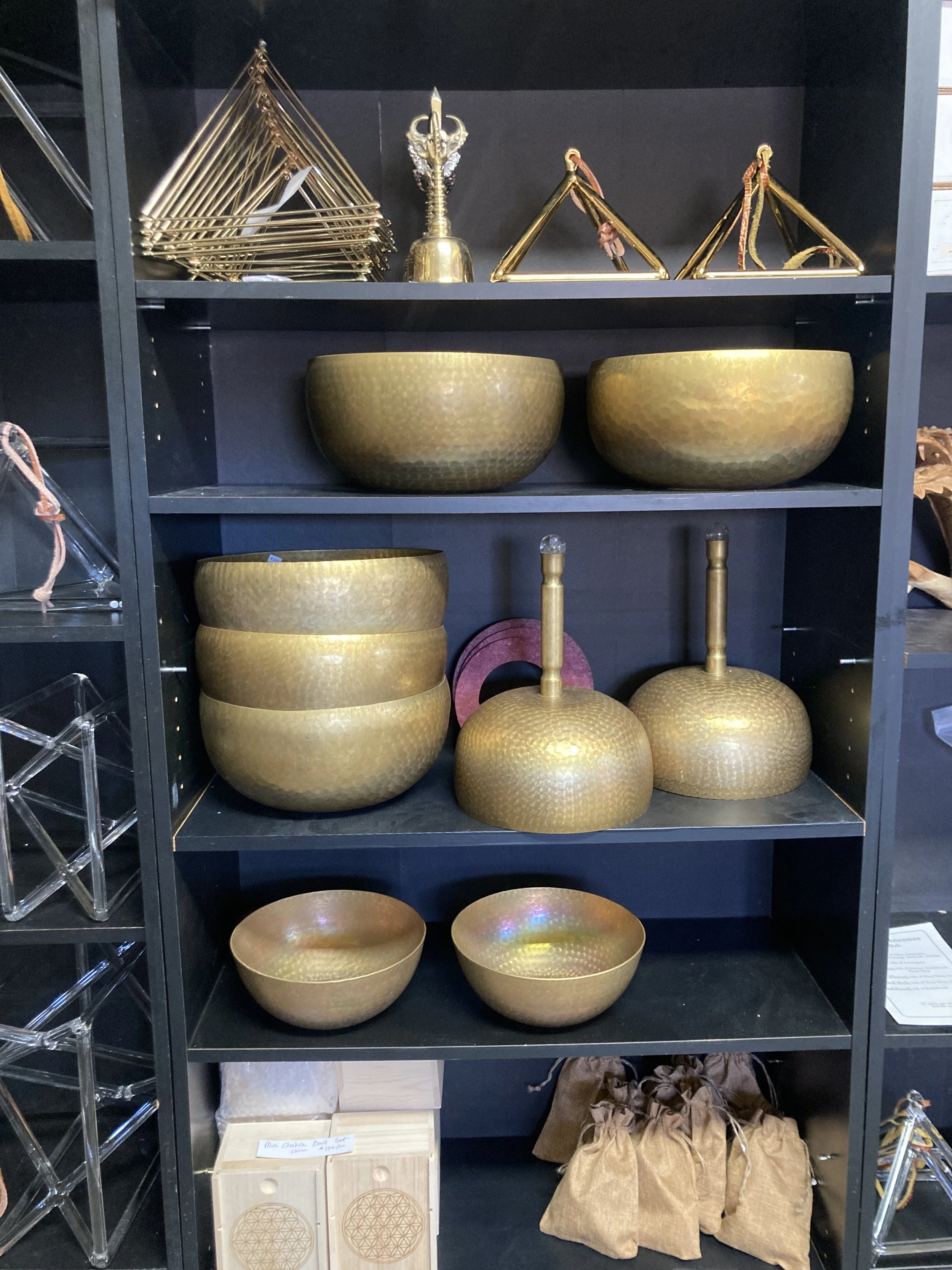 We are so blessed to be able to offer these old (over 100 years) Tibetan 7-Metal Singing Bowls. They come to us through our Nepalese Brahmin friend who lives in Katmandu. He lives and breathes in the circles where these types of items become available and he respects and trusts us in his witnessing of how we hold space so much that he knows in his heart that we will pass these special items on to their new appropriate homes. We are honored.